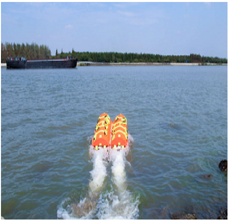 用于快速营救落水人员,可自动调整姿态。负载能力不小于110kg,空载速度不小于25km/h,载人速度不小于6km/h,水面遥控距离不小于800m。最高时速 42.2km/h