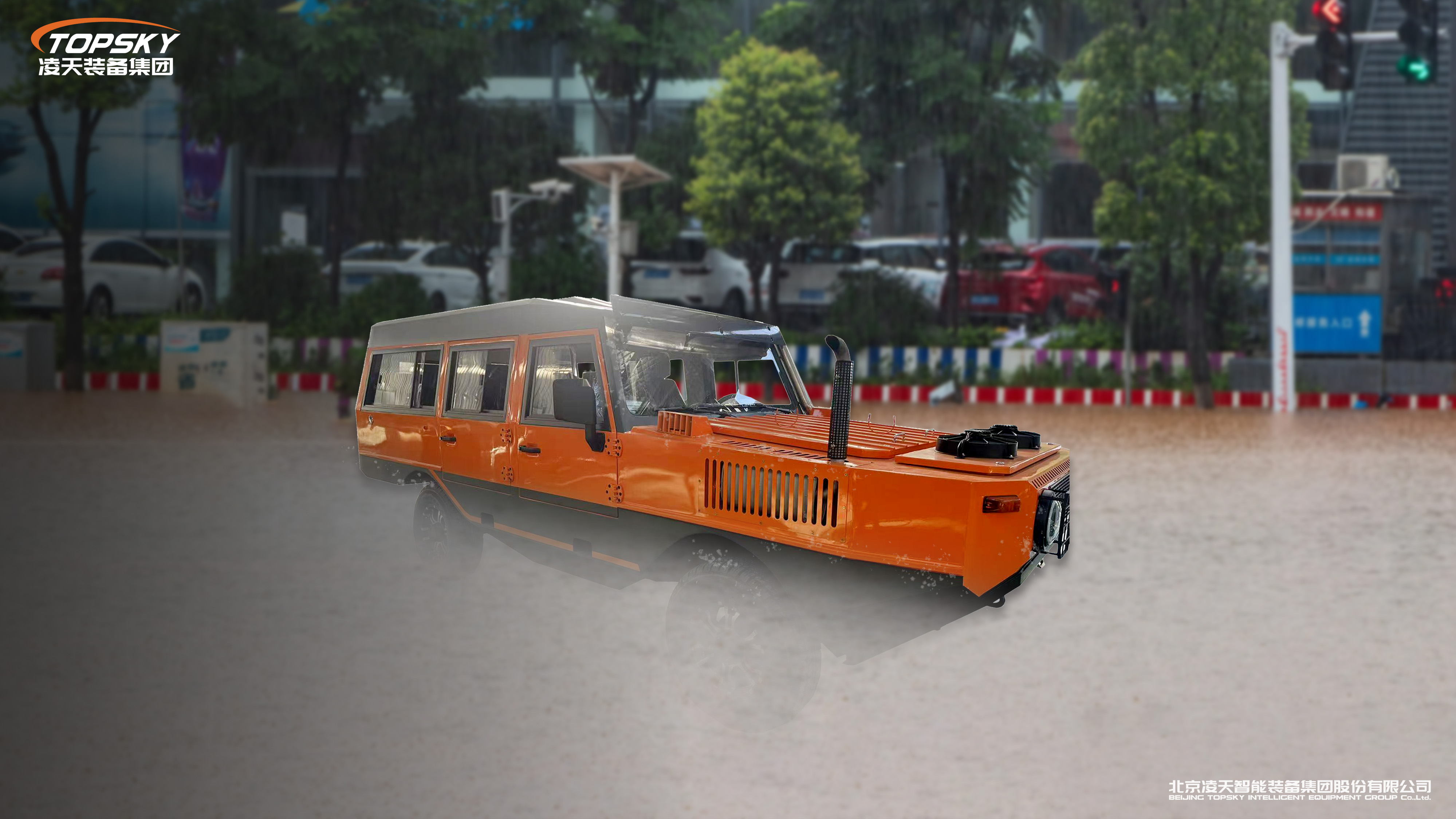 针对水灾频发的地区,水域救援任务必不可少。但往往洪涝灾害、城市内涝往往伴随着恶劣的天气和崎岖的地形,冲锋舟需要多次搭载不同交通工具并数次转移,水陆两栖全地形车可以轻松通过水淹、泥泞、沼泽等环境,无需人力搬运,实现陆地驾驶和水中行走自由切换,以最快的时效抵达现场实施救援。