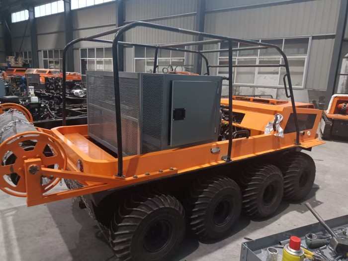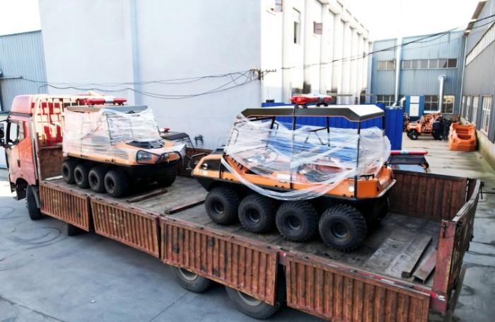 在复杂恶劣的地形条件和自然环境下,水陆两栖全地形车可以让搜救队员和携带的救援装备快速到达救援现场,减少徒步带来提供消耗,完成最后一公里最好五分钟紧急救援任务。水陆两栖全地形车可配备点到绞盘、救援担架组件、探照灯、警示灯、警报器、脱钩、破拆工具等装备, 给救援团队提供救援保障,更安全的解救伤员和疏散群众。