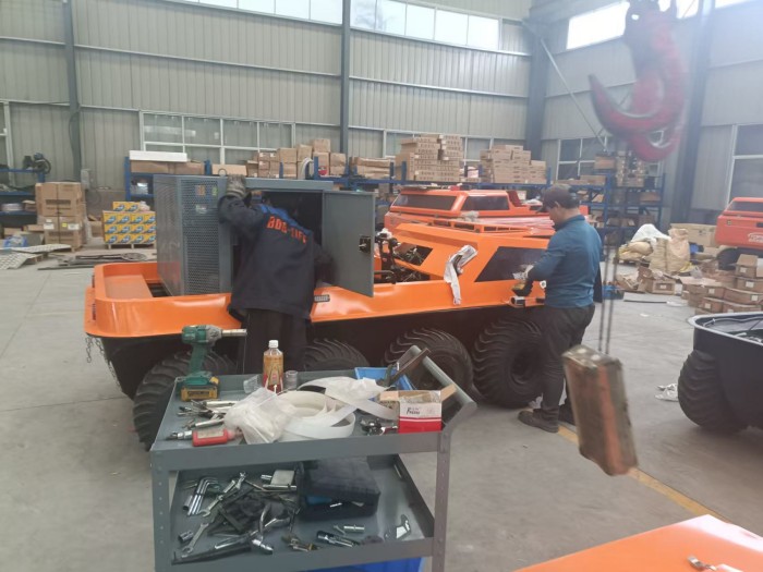 以完成可靠的野外应急救援为目的,该水陆两栖全地形车可提供一种安全的运输方式和可靠的运载平台,产品可以在山地环境、湿地环境、沼泽环境、水面环境、丛林环境等多种工作环境下,实现全天候连续作业。并且可以在灾害现场巡逻勘察、运送受伤人员、并有效实施援救。