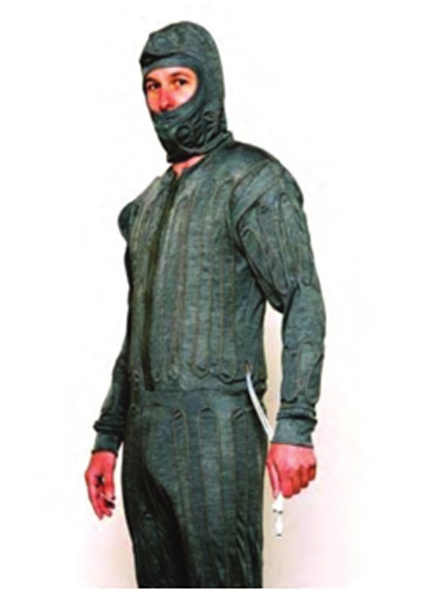 用冰水来移走操作人员在工作中产生的热量,特别是在炎热的环境下。由防火的凯美尔材质制成。试验证明该服具有抗高压、防碎、防弹和防热等功能,非常适合穿于防爆服、防化服里面,以及任何需要降温的情况下使用