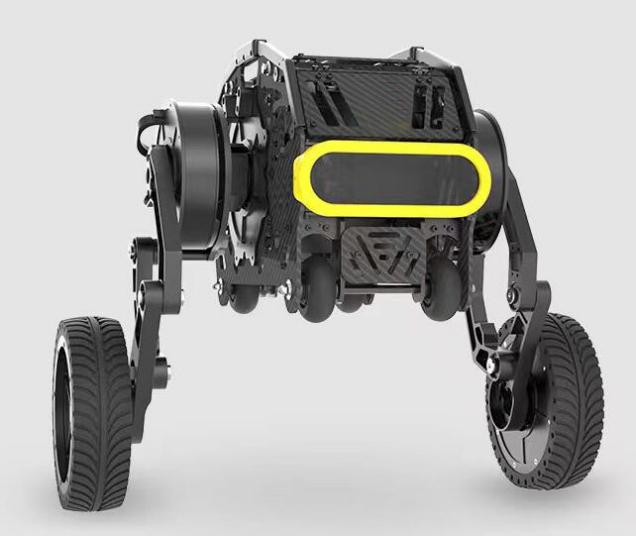 本款双足机器人是一种足部装有动力轮子的双足平衡式移动机器人。这台机器人可以将轮式机器人的速度优势,和足式机器人的机动越障性能结合,可以在多地形下高效、灵活的运动。这种机器人也是当下学术研究的热点。机器人的腿部和机体结构由本末科技自主研发设计,总共由六个直驱型关节电机M1502D驱动。