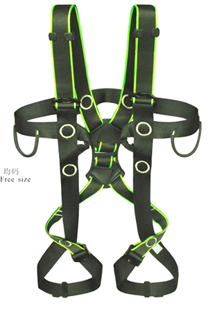 全身安全带, 肩带及脚带可调,有两个防坠落系缚点, 分别具有胸部、背部,重里800g,拉力: 22KN, 操作方便,安全。有消防检测报告、消防认证、CE