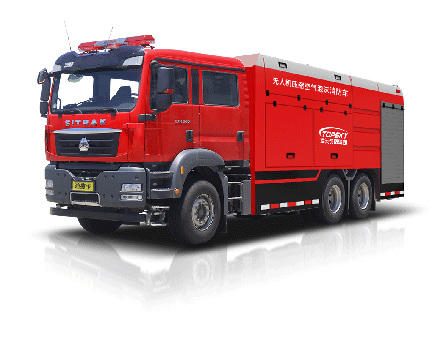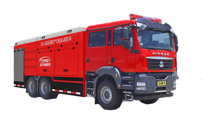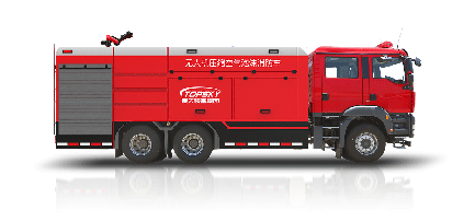 高空灭火无人机系统,采用6×4消防专用底盘为运载平台,搭载我司自主研发的水带系留式重型消防灭火无人机和压缩空气泡沫系统(CAFS),具备高效灭火(高效泡沫隔离、冷却、窒息)、高空破窗、自动避障,展开快速、精准锁定火源、多角度控制火点、空中作战时间长等特点。机身采用纯碳纤维和航空铝材料制作而成,减轻机身自重同时提高物质载重量,该无人机具备陆空两栖功能,可以在地面行驶,行走系统可快拆;可喷射水及压缩空气泡沫,使用超轻型浮力水带喷射的压缩空气泡沫密度更轻,可以能快速启动升空,拖带水带升至高空,系统操作稳定性更强。