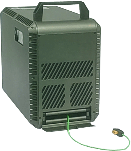 机载系留电源箱是一种向工作在高空的照明无人机提供电力的供电系统,系统由系留电源箱、机载模块组成,通过地面系留供电系统源源不断输送电力,可实现24小时不间断滞空,悬停,解决了常规无人机续航能力不足的难题,在救灾抢险,电力抢修等一些突发情况中发挥了重要作用。