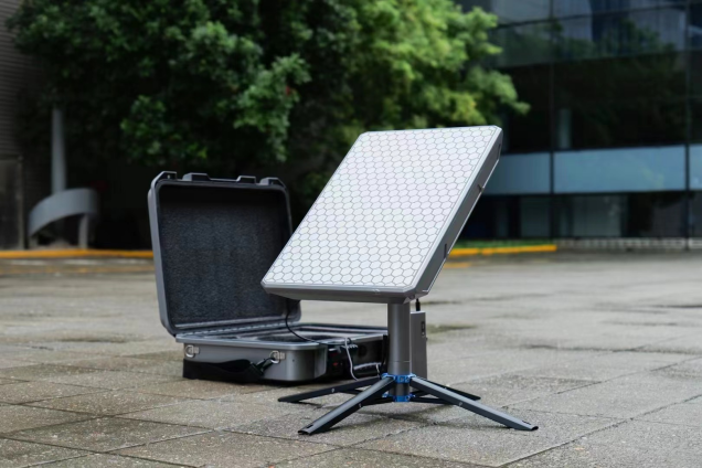 本产品是一款ku波段自动卫星便携站,等效口径0.45米;体积小、重量轻,外观简约、精美。可广泛应用于旅游、户外直播等多种行业。