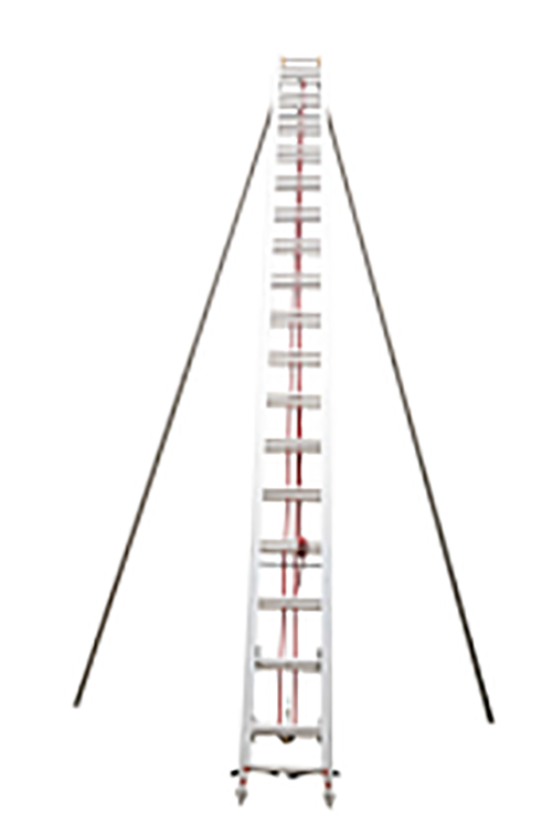 高强度铝合金材料制作,拉梯在展开和缩合的过程中,其限位装置安全可靠。可用于救火、救灾史时登高救人、灭火作业;尤其在城市无攀高车,及消防通道狭窄,攀高车不能到达火场,而普通梯在现场又达不到需要的高度,该梯可配合消防灭火,也可用于工厂、矿山、多层建筑等登高维修和各种登高作业。