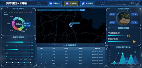 消防机器人云平台集机器人分布、机器人统计、视频、气体、语音、控制等集成于一体,做到全局把控、机器人监测、全生命周期综合使用及可视化操作。当遇到突发事件时,能在线直观的分析并高效的了解到设备实时状态。