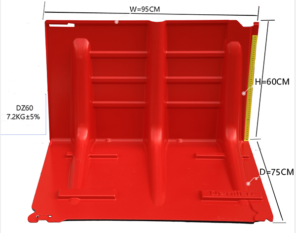 2.L型结构,合金聚酯复合材料可拆卸卸式防洪板,每块板上都有卡扣和连接结构,可灵活组装,底部有防滑胶条和阻水记忆棉,有效挡水高度不低于50cm。