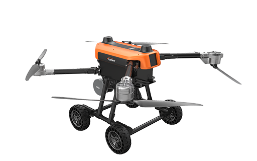 本无人机为北京利盈娱乐智能装备集团研发的陆空两栖三维侦测建模无人机,采用四旋翼机身设计,载重大,续航长,并且机体折叠标准化负载接口。同时,该无人机具备陆空两栖功能,可以在地面行驶。
