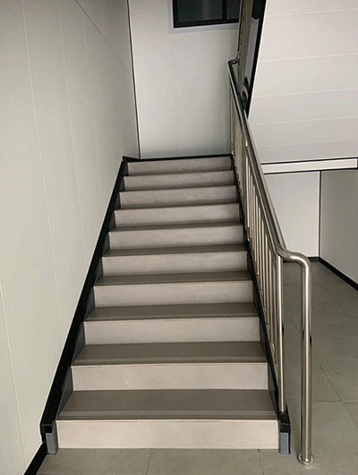4.节能环保,外观鲜明,消防标识突出工业化生产 、模块化拼装 、对施工现场无影响,采用空断热设计 ,隔音保温性能佳,采用新型复合材料, 防滑耐用易清洁。