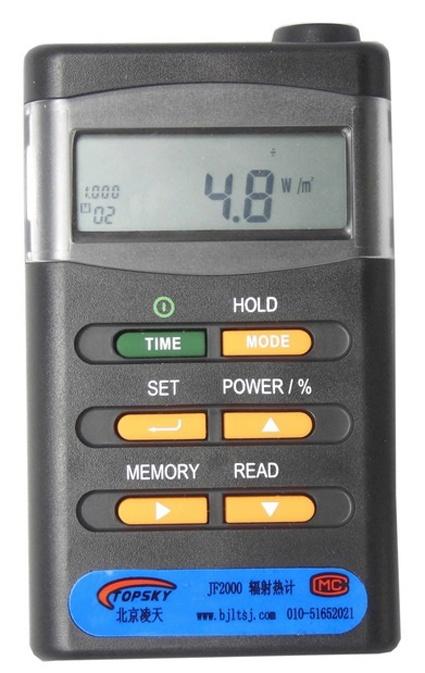 ± 10W/m2[ ±3 Btu / (ft2*h) ] 或 ±5%读值之其中最大者。温度系数±0.38W/m2 / ℃ [ ±0.12 Btu / (ft2*h)/ ℃]偏离25℃时 |
